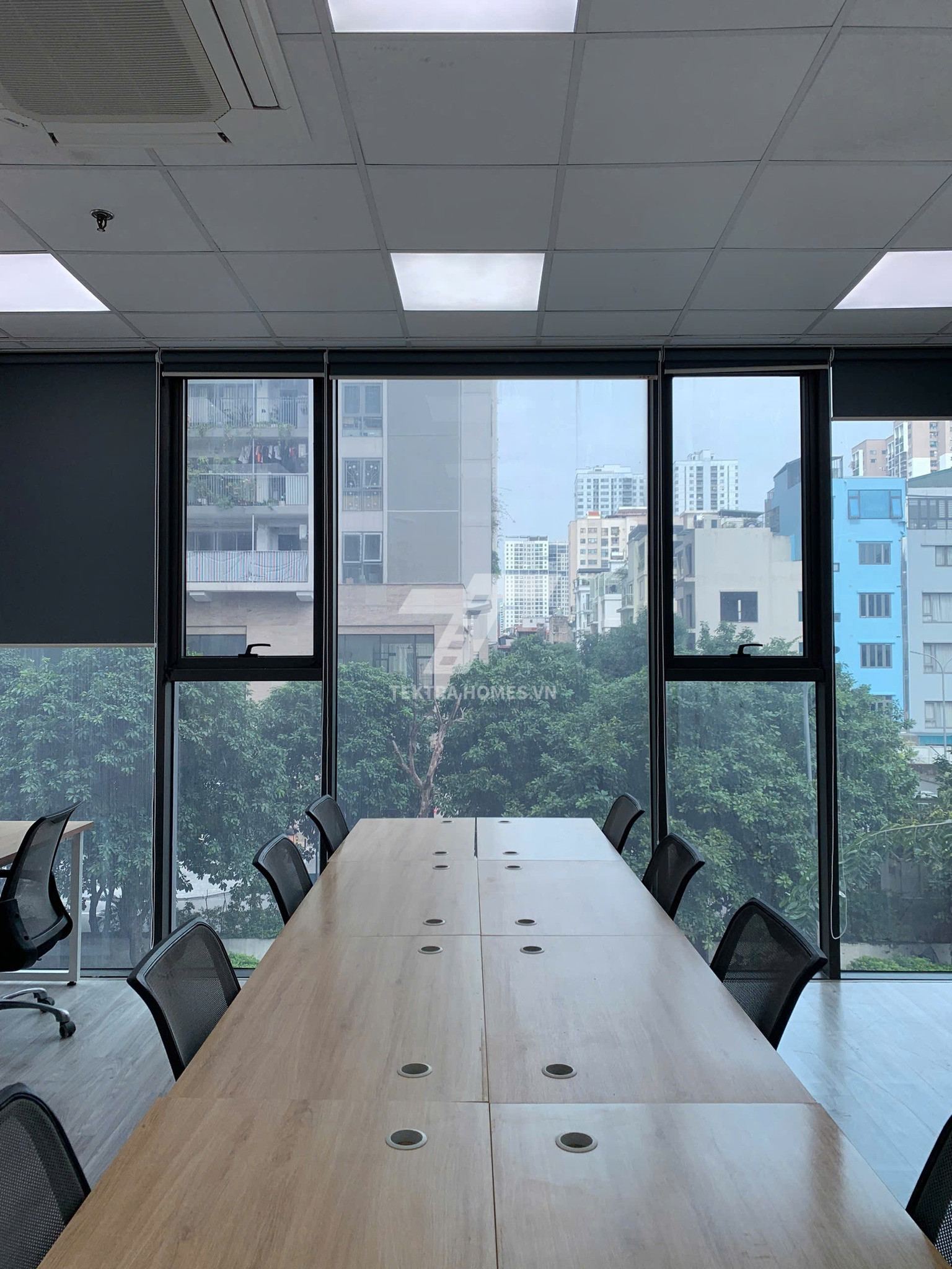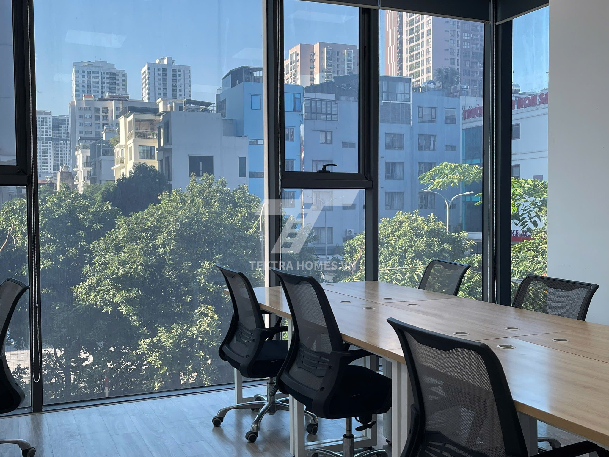 Văn phòng full nội thất, ánh sáng tự nhiên, thiết kế hiện đại.